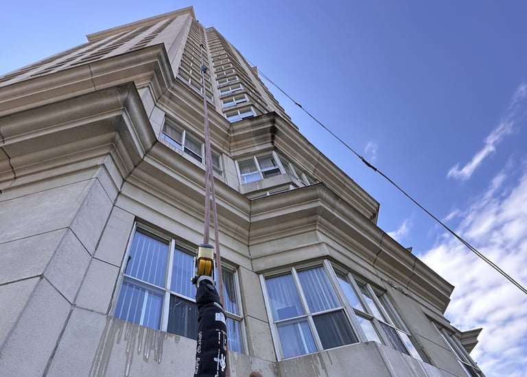 We provide professional exterior window and balcony glass cleaning for residential towers, condos, and private homes across Toronto and the GTA. Using certified rope access methods and safe equipment, our team ensures every surface is spotless and streak-free. From luxury high-rises to smaller residences, we deliver the same level of precision, care, and reliability that keeps our clients’ properties shining year-round.